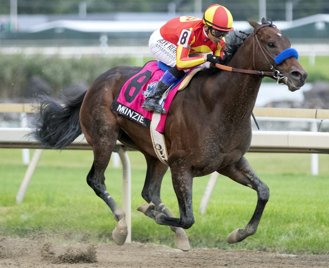 Trainer Bob Baffert sent out McKinzie for a 1 3/4-length score in the Pa. Derby off a more-than-six-month layoff. Jockey Mike Smith challenged for the lead with McKinzie on the far turn of the 1 1/8-mile race and came into the stretch in front by himself. He turned back a solid bid from Axelrod in midstretch to prevail.
