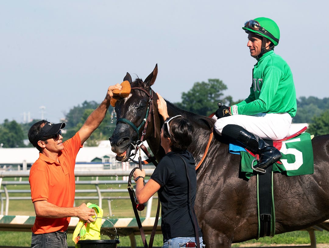 CYPRESS, Calif. – Justify is having a cool time in the first week of July at trainer Bob Baffert’s stable at Santa Anita.