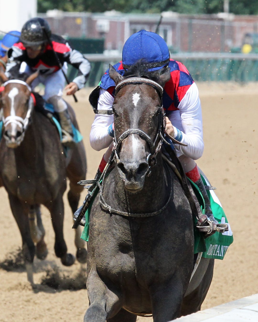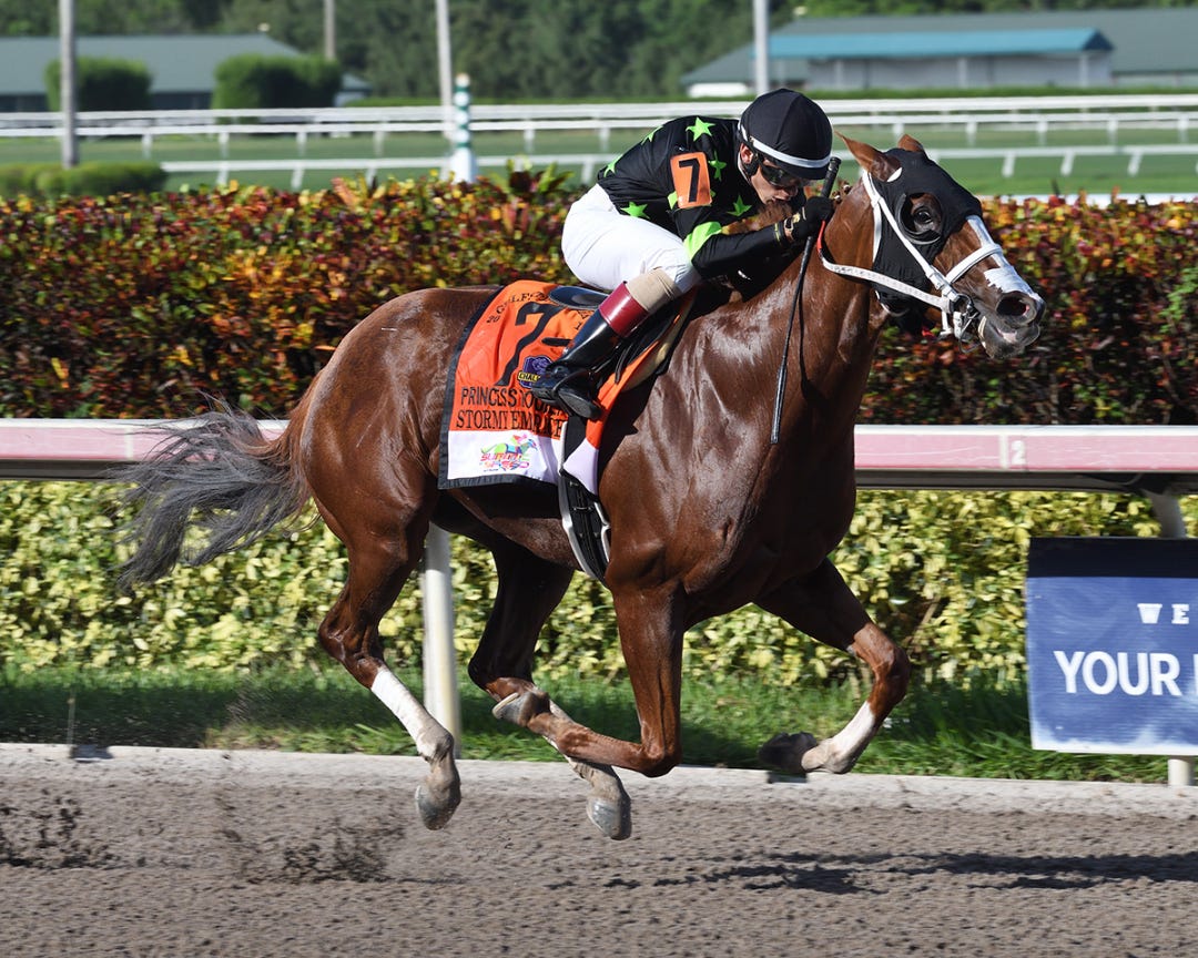 Despite being checked to avoid an injured rival, Restless Rider pulls away to win the Debutante under Brian Hernandez Jr. on Saturday.