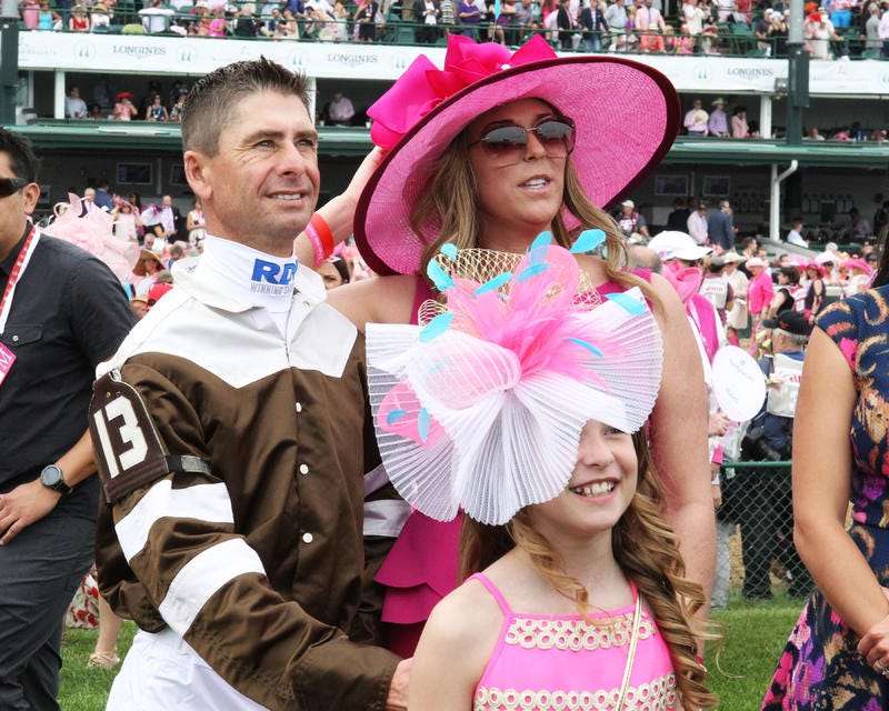 Jockey Corey Lanerie, wife Shantel, and daughter Brittlyn on Kentucky Oaks Day at Churchill Downs on May 4.