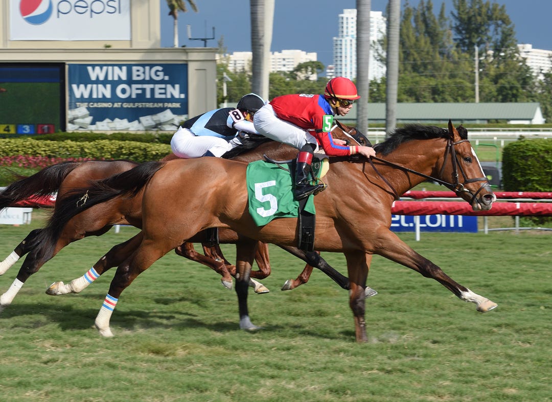 HALLANDALE BEACH, Fla. – With one Kentucky Derby win already in his pocket, Vinnie Viola will be playing with house money when he returns to Churchill Downs in two weeks as the owner, with Mike Repole, of Vino Rosso, one of three leading Derby contenders trainer Todd Pletcher worked at the Palm Beach Downs training center Friday morning.