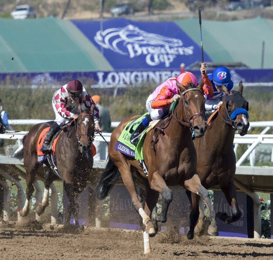 Trainer Kiaran McLaughlin, watching from the clocker’s stand, said of Enticed, “He’s likely to be second.”