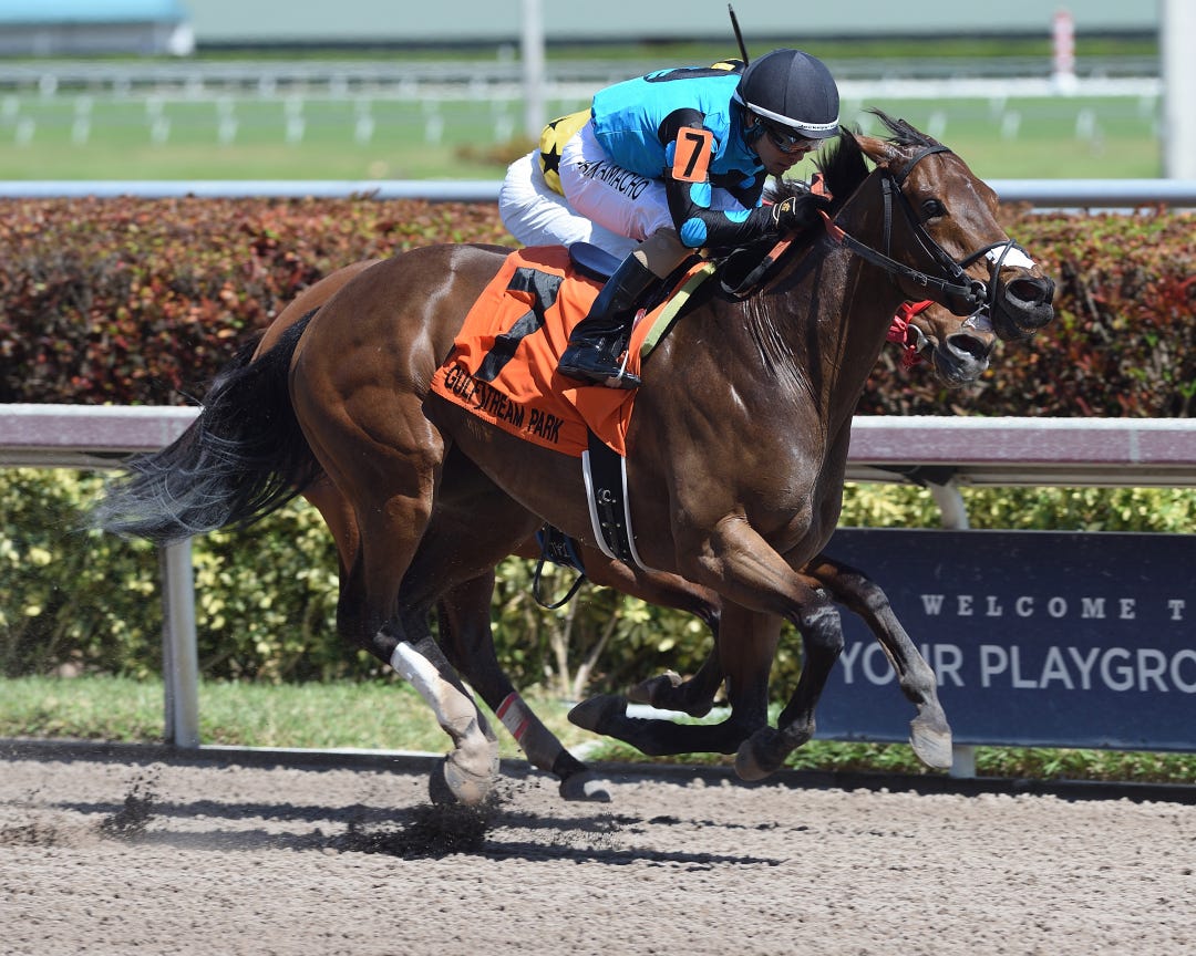 Justify, by Scat Daddy, was always near the front and won by 9 1/2 lengths in 1:21.86. Ridden by Drayden Van Dyke, Justify earned a Beyer Speed Figure of 104, the highest given to a 3-year-old this year.