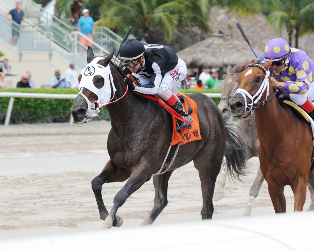 In the sixth race, Servis watched in horror as his Blue Bahia took a bad step, stumbled badly, and appeared to have possibly broken down while moving readily to the lead near midstretch while en route to an apparent victory in the Ladies Turf Sprint. Two hours later, Servis was in the winner’s circle following Rainbow Heir’s impressive two-length victory in the Gulfstream Park Turf Sprint while bearing good news about his filly.