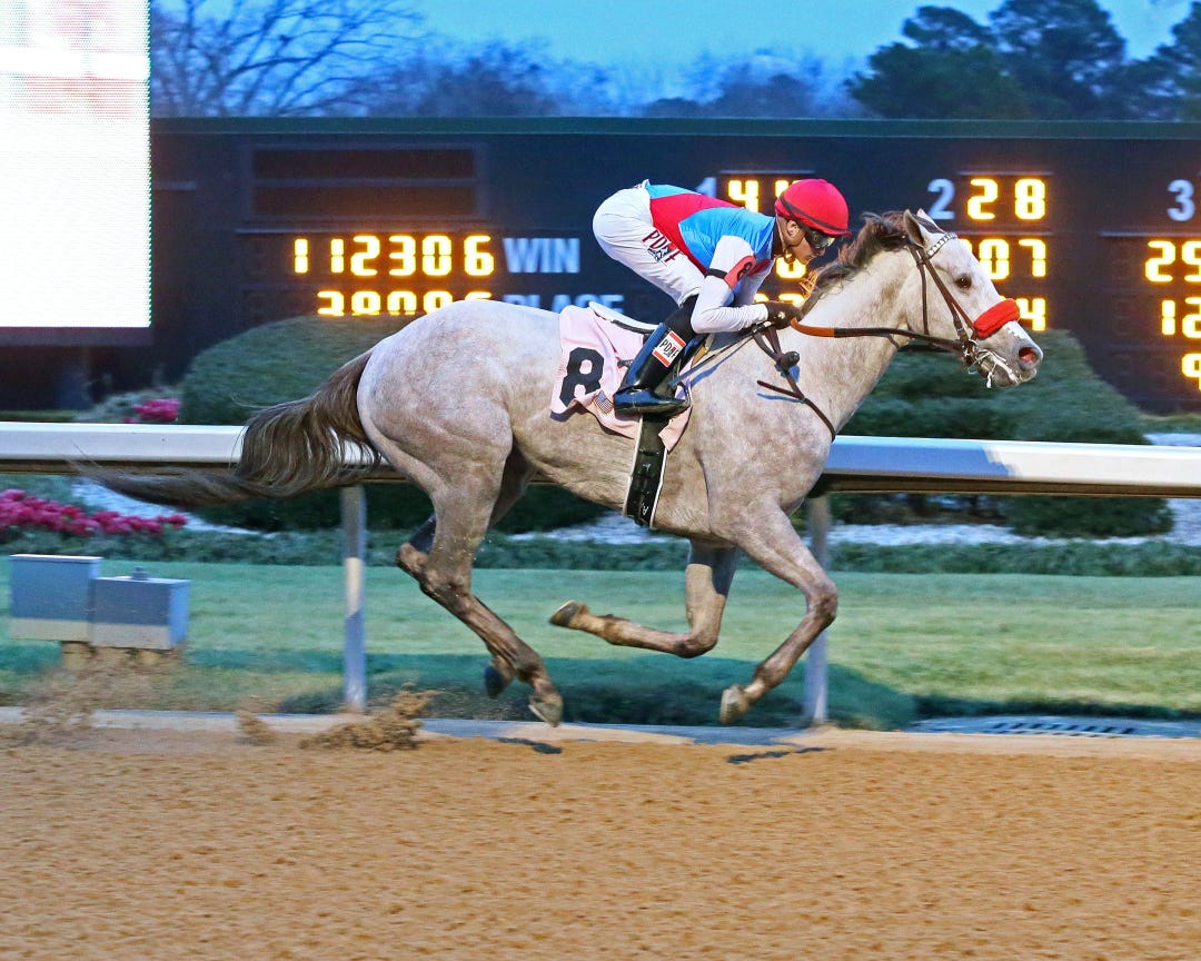 Tyfosha stalked the pace in Sunday’s sprint and scored by 4 1/4 lengths while making her first start since running second to eventual multiple Grade 1 winner Moonshine Memories in a Del Mar maiden race in August. Tyfosha earned an 80 Beyer Speed Figure on Sunday in her fourth career start.