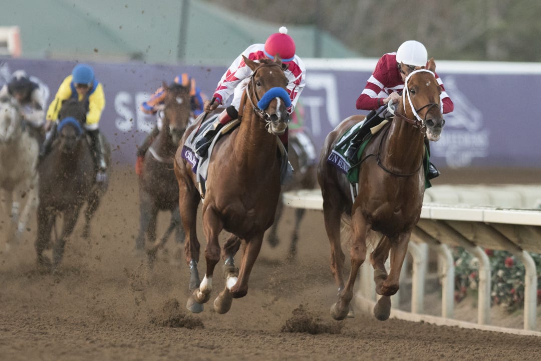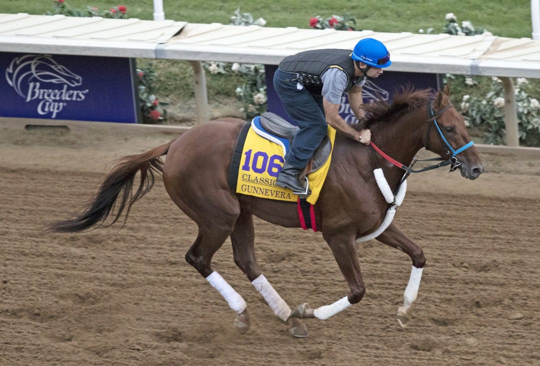 Under his regular work rider Angel Garcia, Gun Runner was clocked in splits of 13.20, 25.40, and 49.40 on the way to an official five-furlong time of 1:00.80, meaning he really picked up his pace in the homestretch, going his final furlong to the wire in 11.40 seconds. Gun Runner’s gallop-out was timed in 1:14.60.