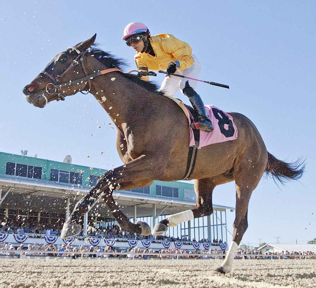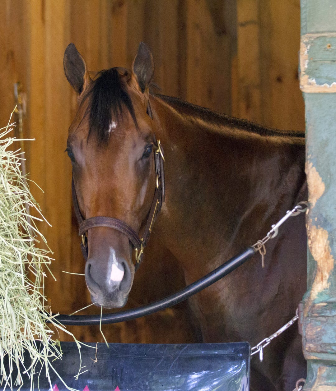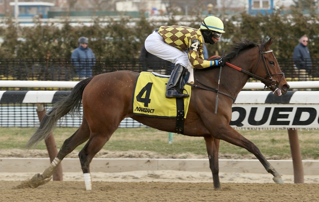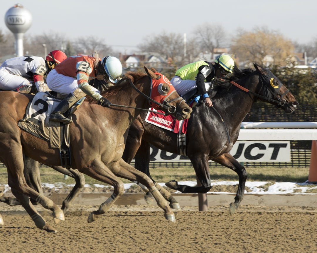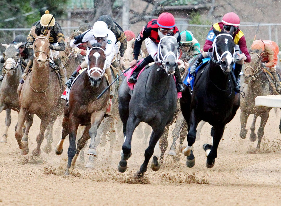 Petrov (second from right) led into the turn before being overtaken by One Liner in the Southwest Stakes last out.