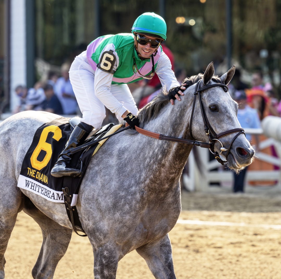 Flavien Prat was the star rider opening week with seven victories. Three of them were in stakes, including the Grade 1 Diana with Whitebeam (above).