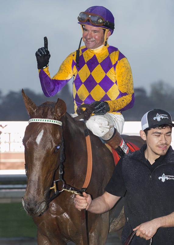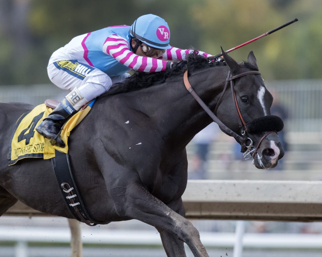 Midnight Storm won the Grade 1 Shoemaker Mile on turf last June and was third in the Breeders’ Cup Mile here in November. His last two starts have come on dirt, and he won them both – the Grade 3 Native Diver Stakes at 1 1/8 miles at Del Mar on Nov. 27 and the San Pasqual Stakes at 1 1/16 miles.