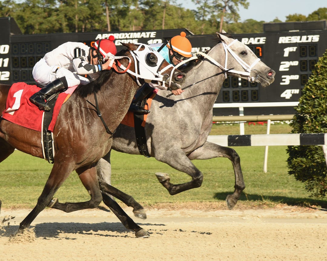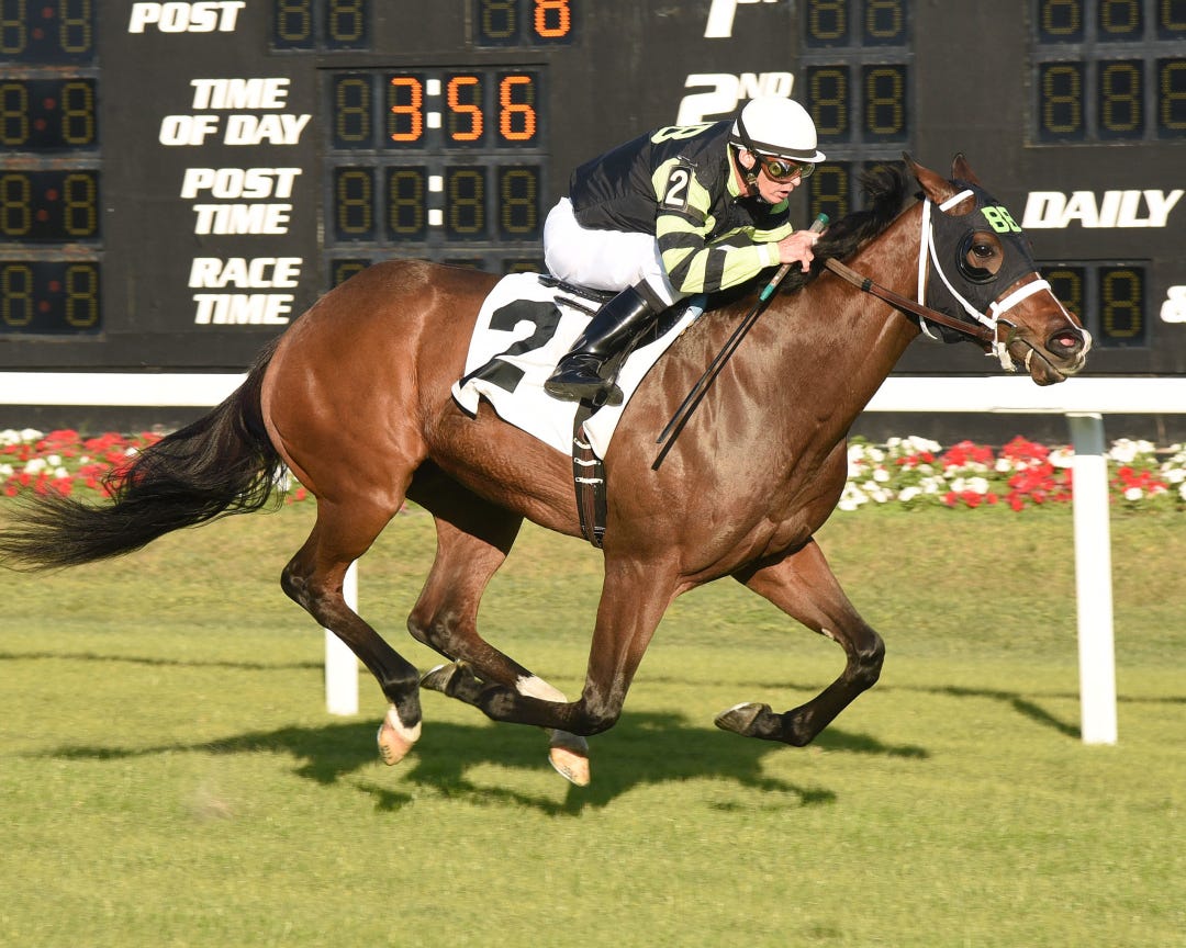 The performance atoned for the filly’s prior start Oct. 19 at the Meadowlands, where she appeared to be on her way to a front-running victory in a $25,000 maiden special weight race before bolting on the turn. Dini said Dynatail may have benefited from the addition of blinkers on Saturday.