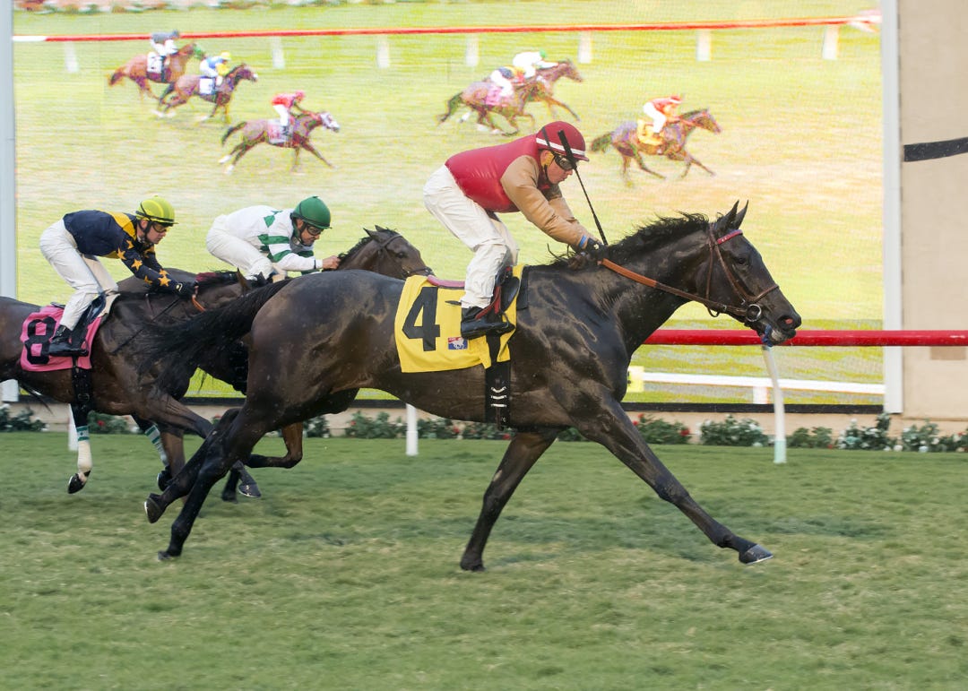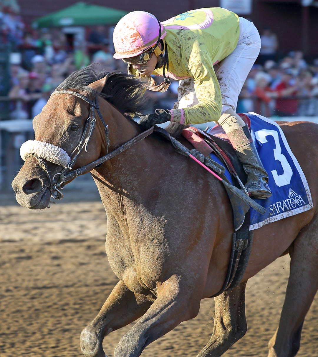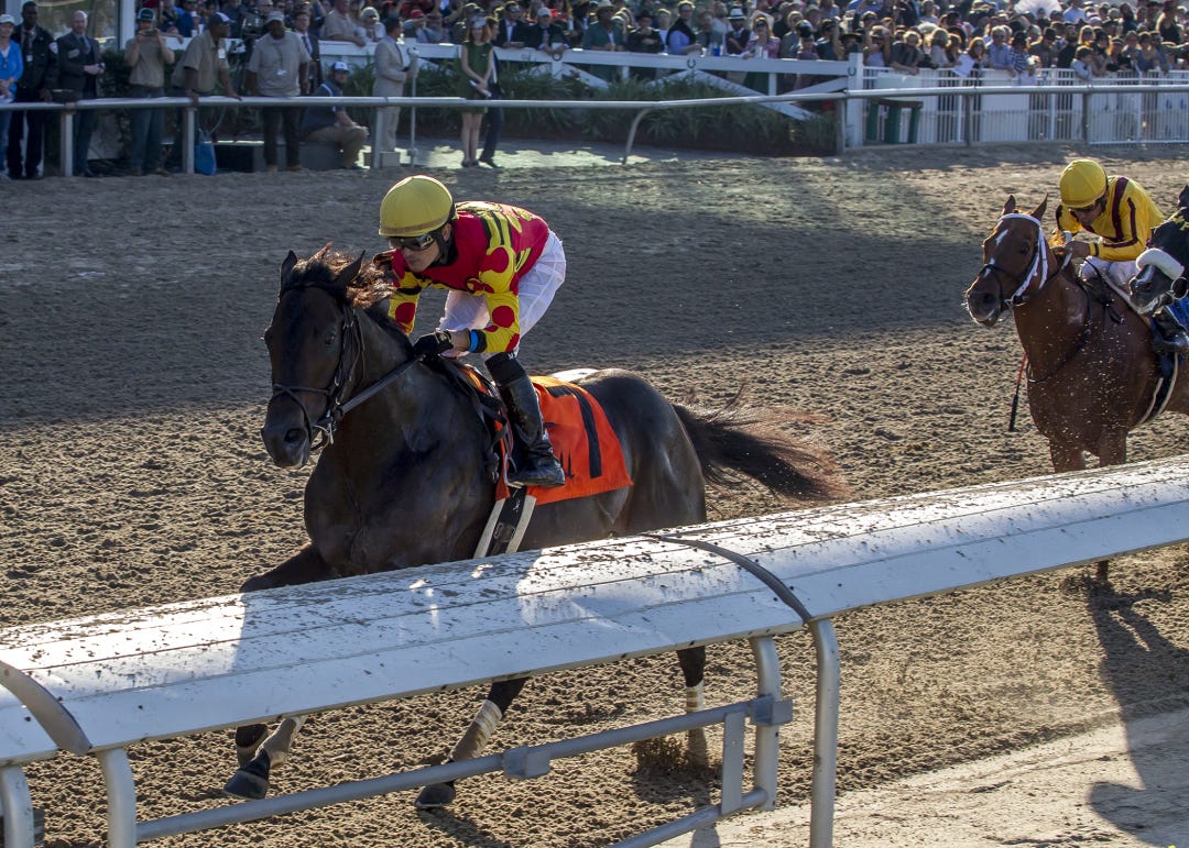 Miss Temple City pays $17.40 for her win under Edgar Prado in the Grade 1 Shadwell Turf Mile.