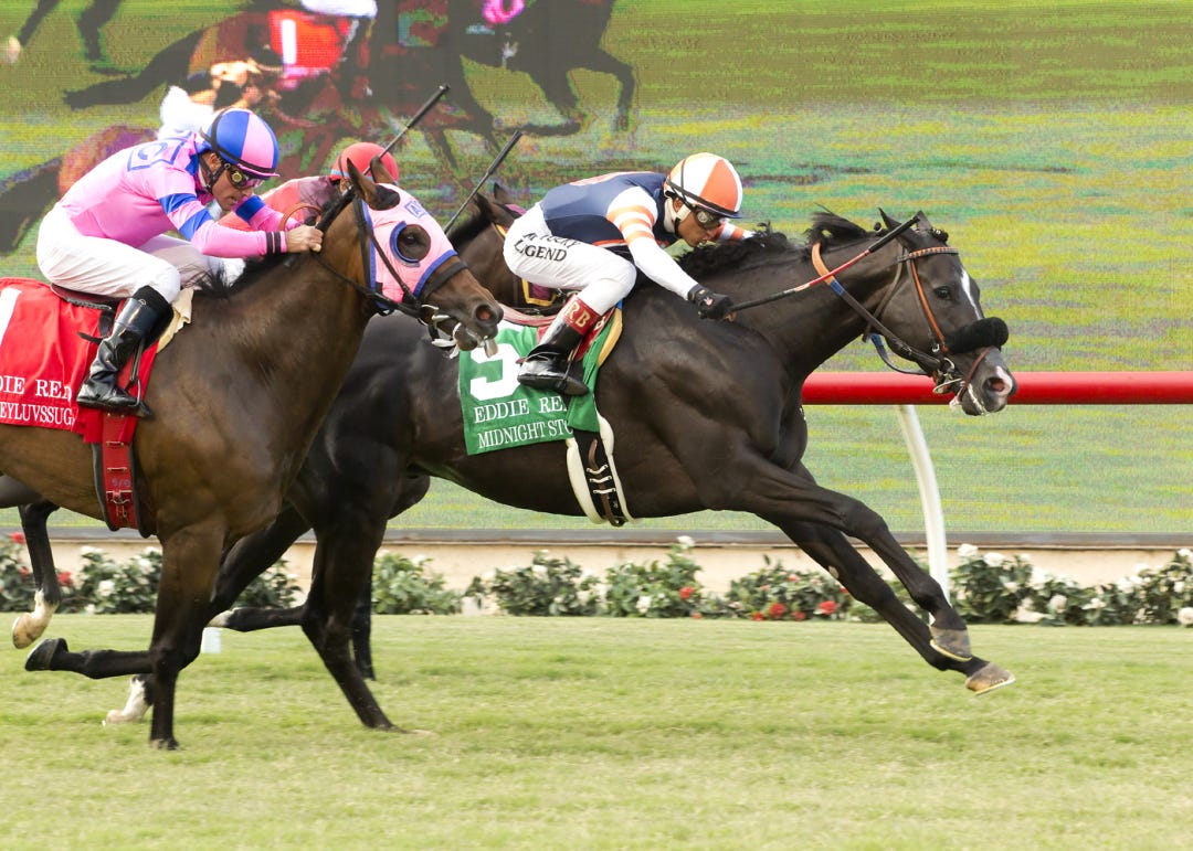 DEL MAR, Calif. – A year ago, Midnight Storm was ambitiously tried in the $1 million Pacific Classic on dirt, finishing last of 10 in Del Mar’s richest race. He has not raced on the main track since and will not for the foreseeable future.