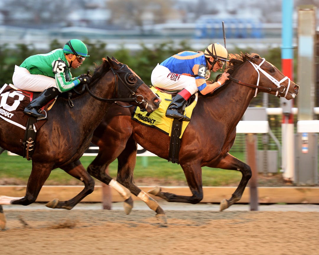 Sudden Surprise, a son of Giant Surprise owned and bred by Mike Repole, went 5 for 6 as a 2-year-old, with this wins coming from 5 1/2 to seven furlongs. His lone loss came in the one-mile Sleepy Hollow Stakes at Belmont Park, where he finished fourth, beaten 3 1/2 lengths by Get Jets.