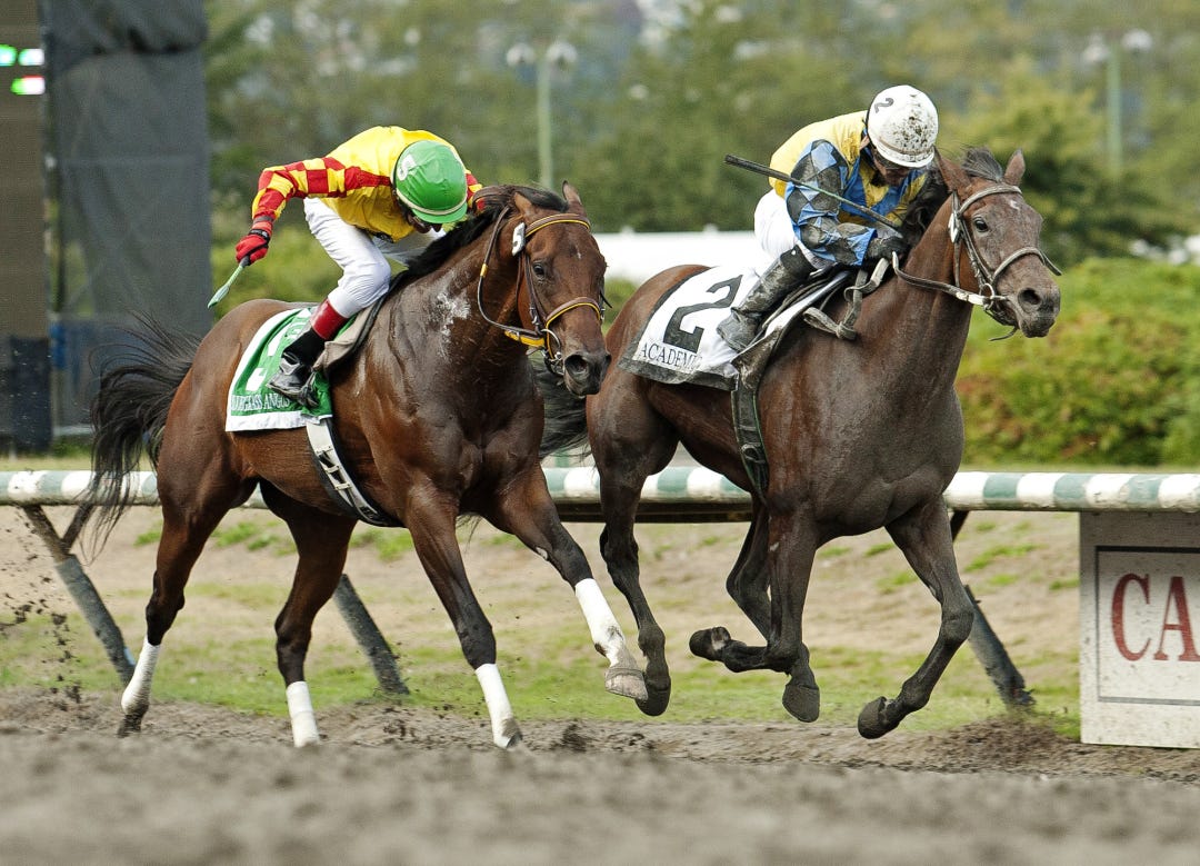 Championofthenile earned a 94 Beyer Speed Figure when he won a maiden race for New York-breds by six lengths on the front end. In the Bongard, Championofthenile broke outward and found himself off the pace. He couldn’t run down Sudden Surprise, who went gate to wire.