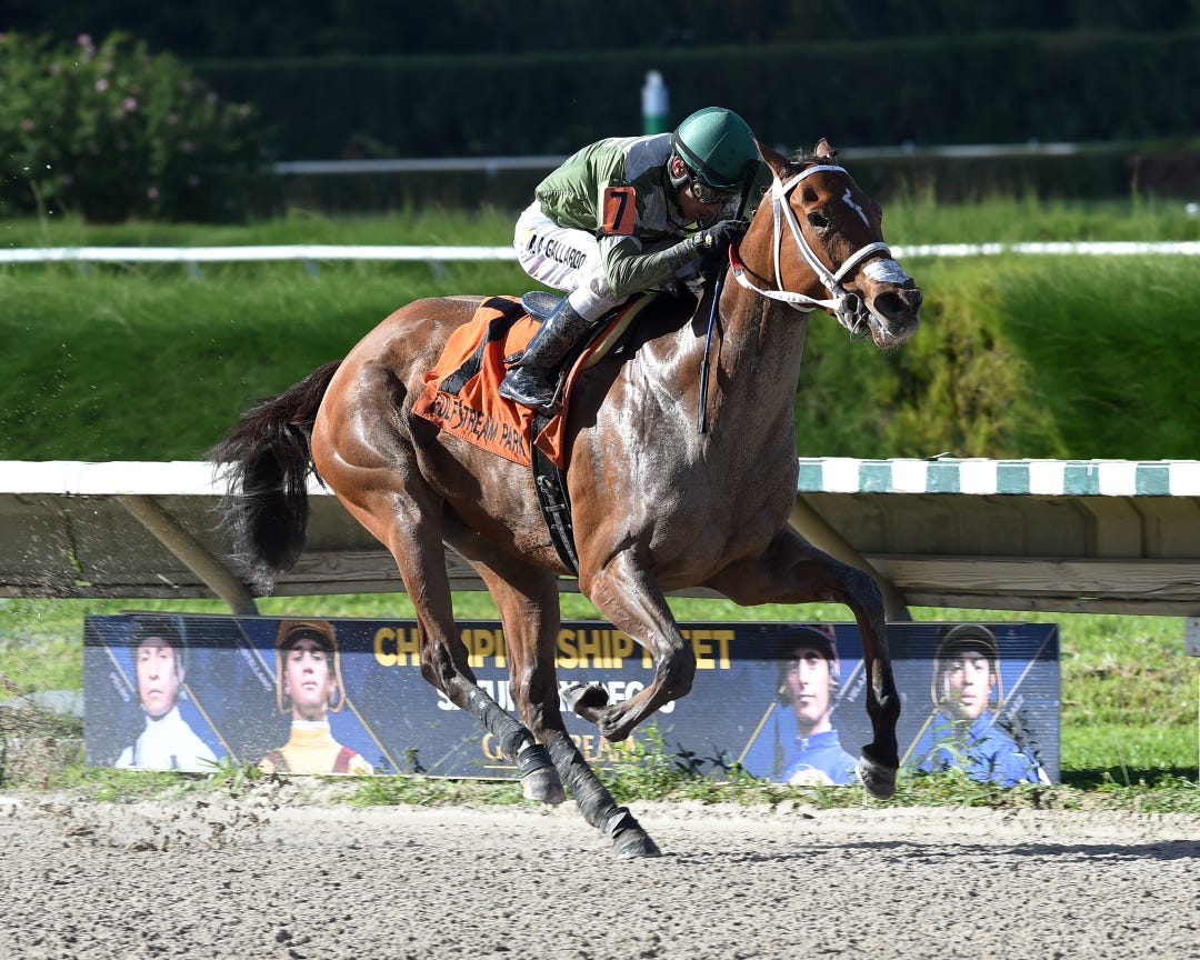 Ridden by Kent Desormeaux, Let’s Meet in Rio caught stretch leader Laoban in the final sixteenth to win by 1 1/2 lengths over that rival. Let’s Meet in Rio was fifth and sixth in his first two starts, which came in sprints.