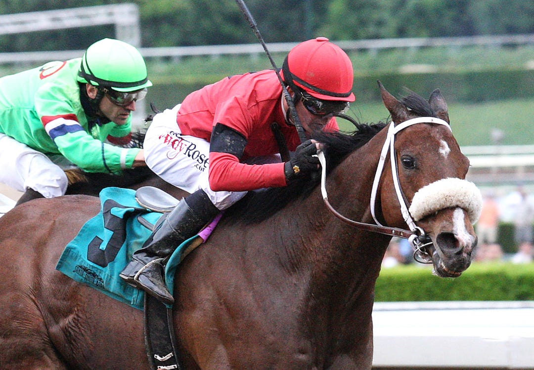 Rock Fall beat The Big Beast by a nose in the Vanderbilt, a race in which John Velazquez, the rider of The Big Beast, lost his whip in midstretch and had to resort to using his goggles to try to get more out of his horse.