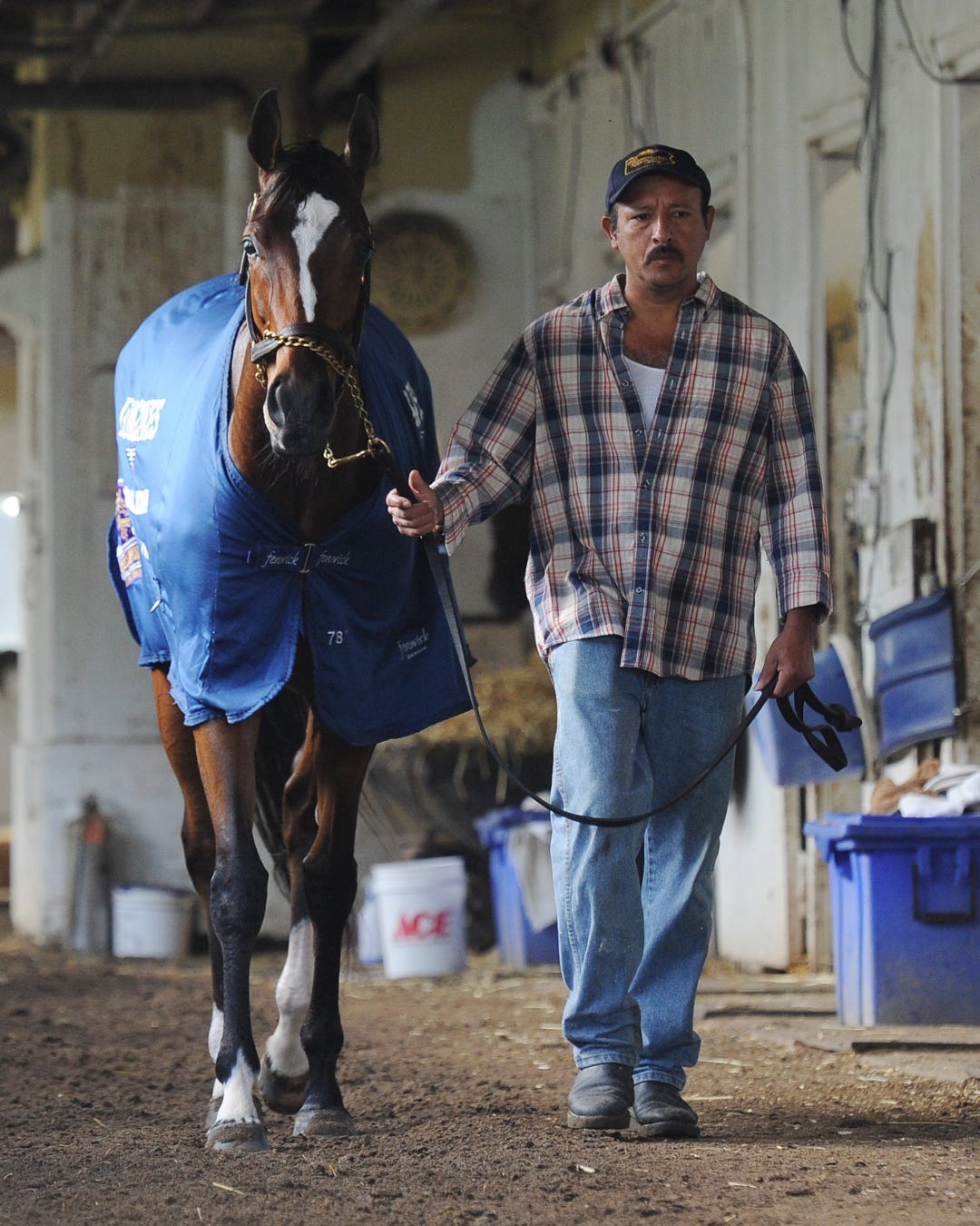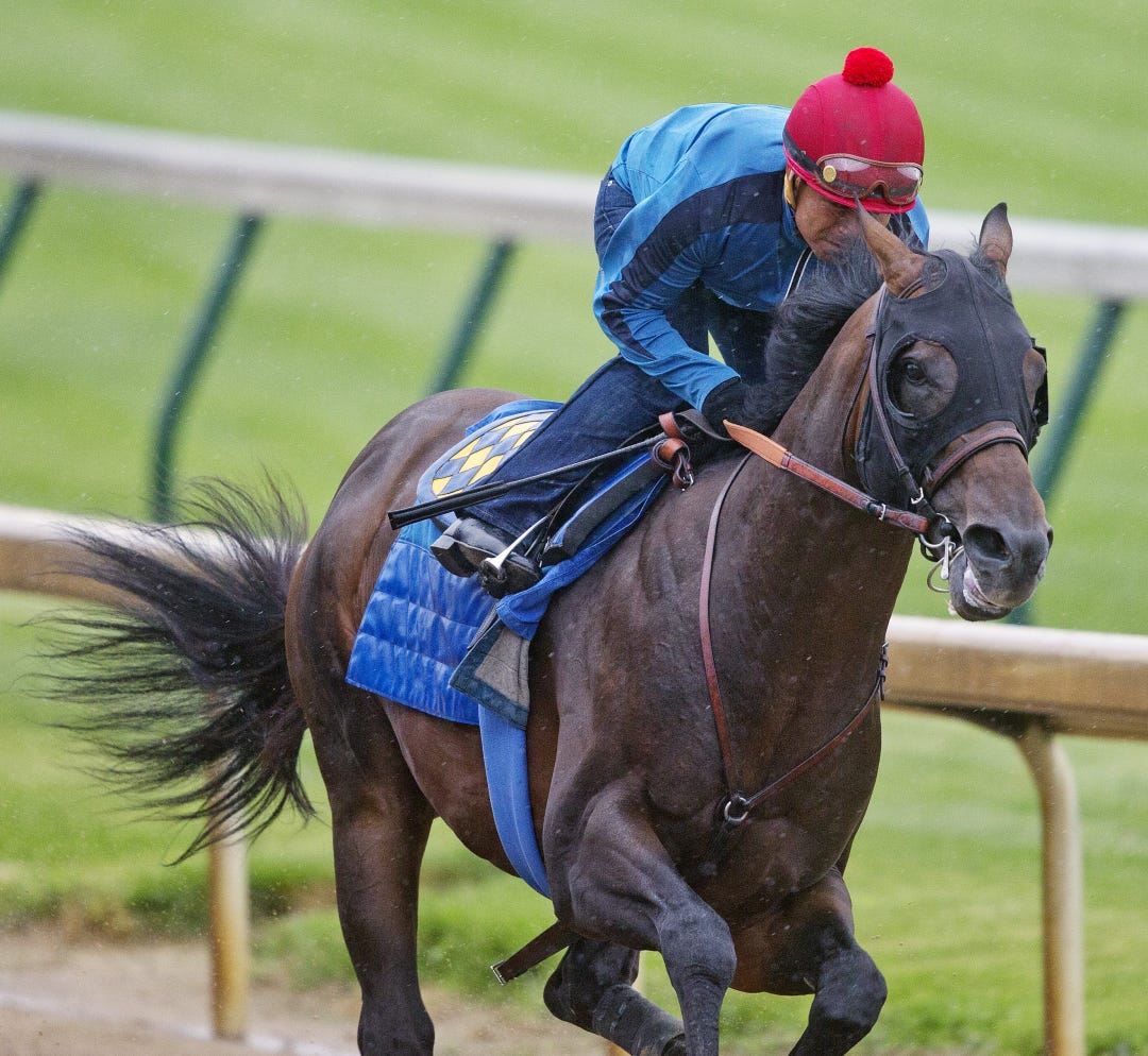 ELMONT, N.Y. – Long-awaited and much-needed rain hit the New York area Sunday night, creating wet, messy racetracks that curtailed most serious training at Belmont Park Monday morning with two notable exceptions.