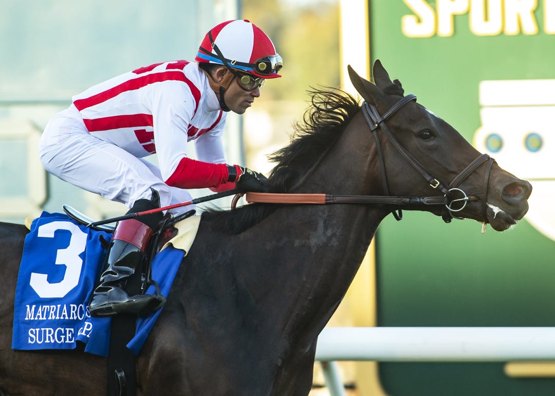 On Sunday at Del Mar, the 3-year-old filly Surge Capacity caught stablemate Fluffy Socks near the finish of the $303,500 Matriarch Stakes at a mile, with two other Brown-trained runners, Beaute Cachee and Whitebeam, finishing third and fourth. Those were Brown’s only runners in the 12-horse field.