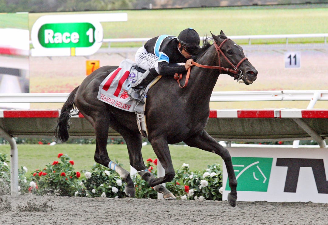 Shared Belief went alone with exercise rider Ricardo Gonzalez, trainer and co-owner Jerry Hollendorfer said. Hollendorfer said Shared Belief would walk very early Wednesday morning at Golden Gate before getting on a van with several other horses that Hollendorfer is sending to Santa Anita for the weekend.