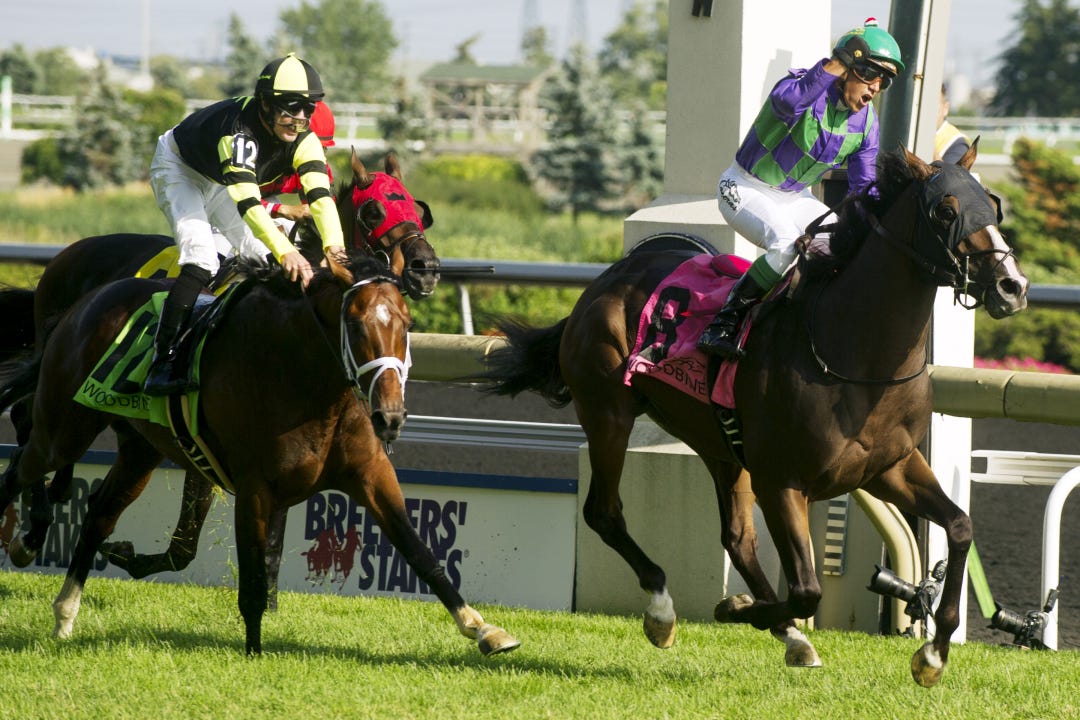 ETOBICOKE, Ontario – Having already run him in the first two legs of the Canadian Triple Crown, trainer Josie Carroll wasn’t sure if the $501,600 Breeders’ Stakes was the right spot for Ami’s Holiday. But Ami’s Holiday showed Carroll that he was ready in the days leading up to the race, and on Sunday, he rallied from midpack to win his first classic event.
