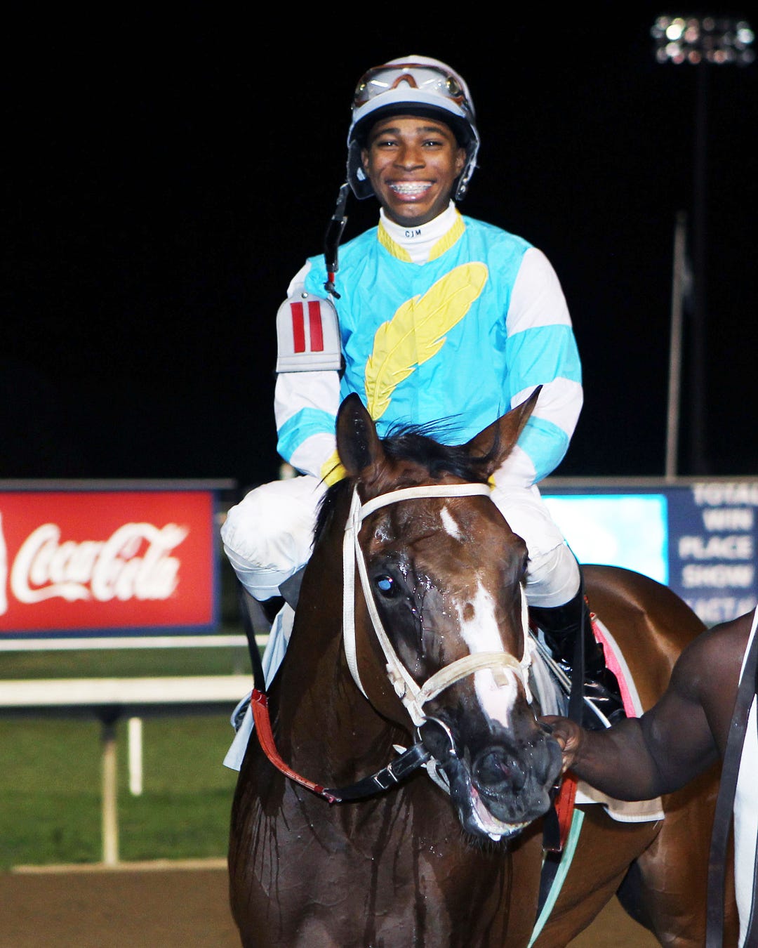 OPELOUSAS, La. – Last Wednesday marked the long-awaited return of jockey C.J. McMahon. After serving a lengthy suspension for being the aggressor in an altercation at Delta this year, McMahon wasted little time in returning to the winner’s circle, taking the evening’s eighth race at Evangeline Downs with longshot Eyejaykay ($69.80).