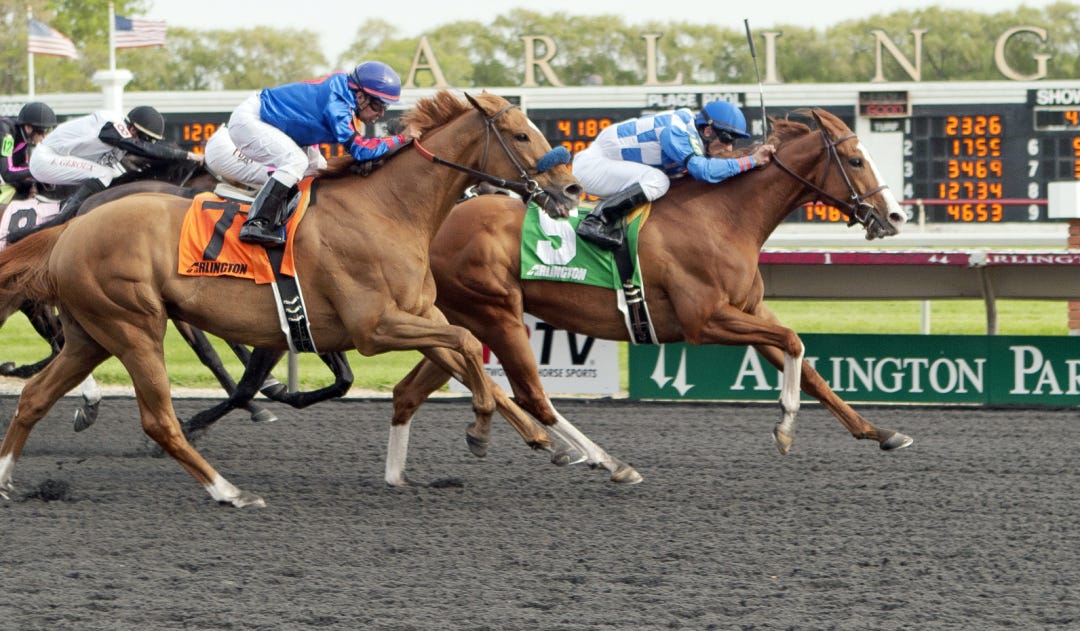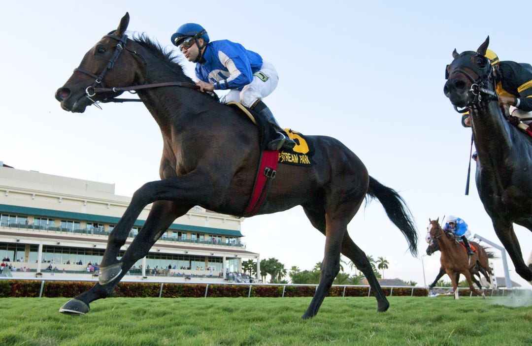 Summer Front, ridden by Joe Bravo, runs down pacesetter Tetradrachm to win the Grade 2 Fort Lauderdale on Saturday.