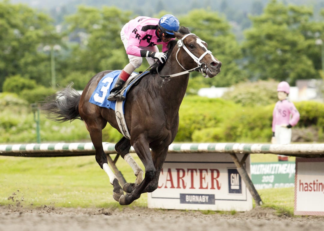 Charlie Em broke a 10-race losing streak with a dramatic win in the $78,550 Possibly Perfect Handicap for fillies and mares over 1 1/2 miles on turf. Ridden by Martin Garcia, Charlie Em ($11.40) caught 3-5 favorite Customer Base in the final stride to win by a head in 2:29.23.