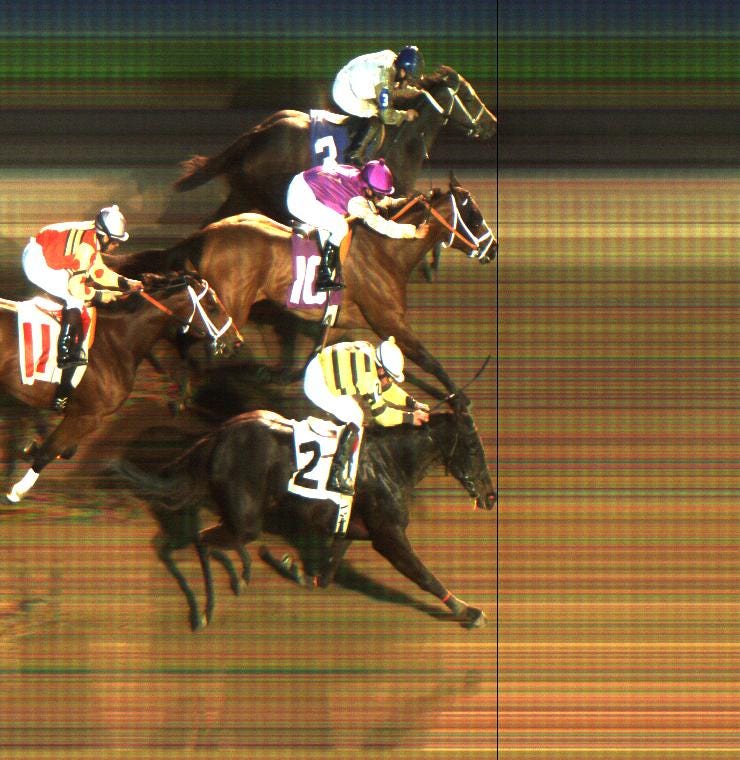 OPELPOUSAS, La. – Sittin At the Bar ran her local record to a perfect 4 for 4 on Friday night when she captured the $60,000 Hallowed Dreams Stakes at Evangeline Downs. Afternoon Tango finished a half-length back in second and 6 1/4 lengths in front of Guadalupe High in third. Dawn’s Cherokee was a late scratch in the six-furlong affair for fillies and mares.