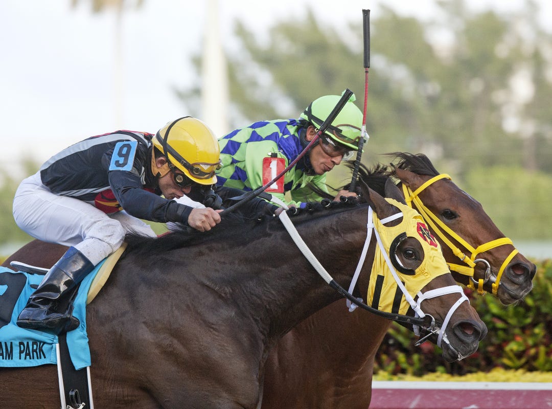HALLANDALE BEACH, Fla. – A year ago, trainer Shug McGaughey won the $400,000 Fountain of Youth Stakes from the rail with Orb. On Saturday, the Hall of Fame horseman will defend that title from the other end of the post-position spectrum after his Top Billing drew post 12 in a bulky field of 13 3-year-olds entered Monday for the Grade 2 Fountain of Youth.