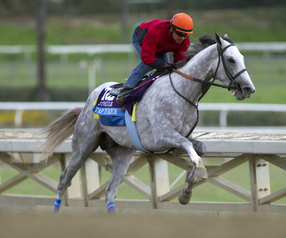 ARCADIA, Calif. – Trainer Bob Baffert used equipment known as “rings” on Tap It Rich for his final workout Monday before Saturday’s $2 million Breeders’ Cup Juvenile.