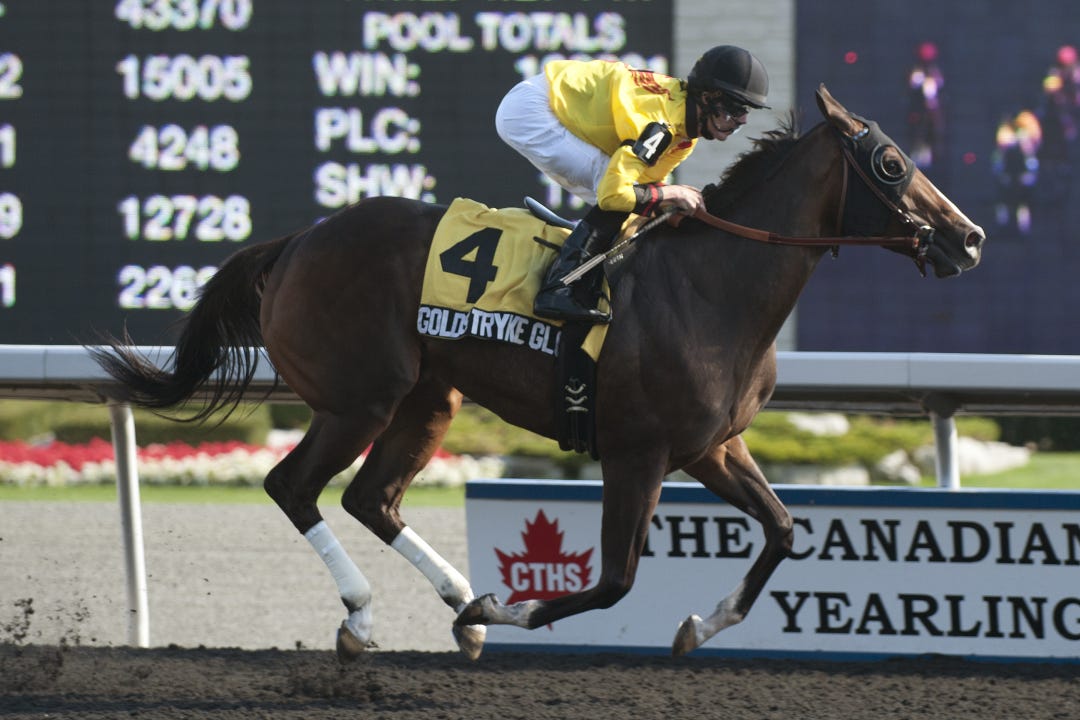 ETOBICOKE, Ontario – Goldstryke Glory won her first stakes in dramatic fashion Monday at Woodbine in the $105,800 Inglorious, a six-furlong dash for 3-year-old fillies.