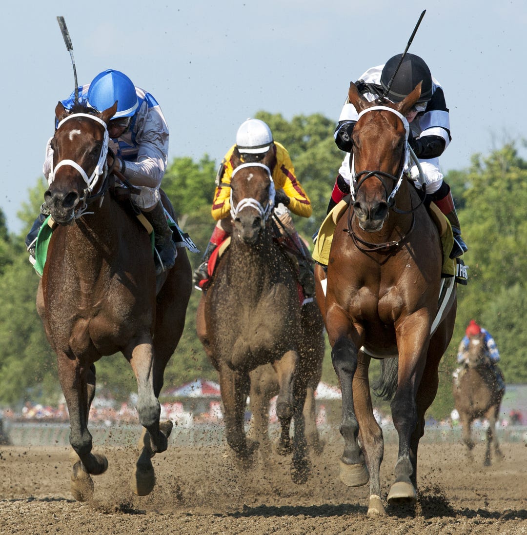 SARATOGA SPRINGS, N.Y. - When 34-1 shot Hunter Forward ran by 4-5 favorite Brandys Secret in deep stretch of Thursday’s 11th race, it created two happy bettors, who each collected $424,936 in Saratoga’s pick six.