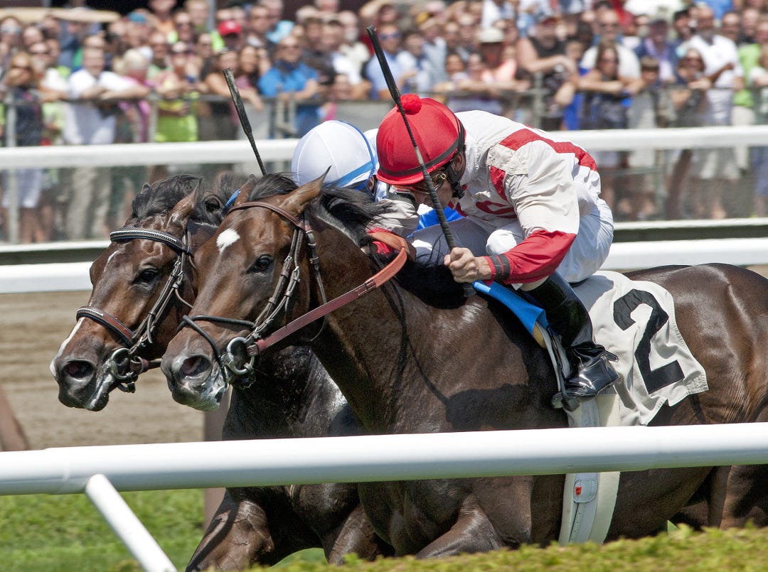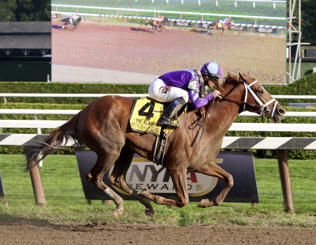 Go Unbridled, with Junior Alvarado riding, wins the Saratoga Dew for the second year in a row.