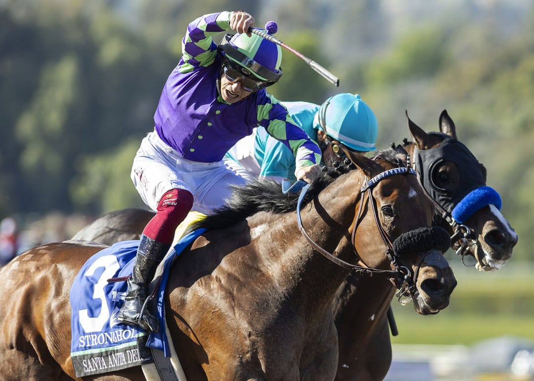 Stronghold, the 2024 Santa Anita Derby winner, resumed a workout routine Thursday at Santa Anita. The 5-year-old drilled three furlongs in 39 seconds, his first breeze in more than three weeks as he gears up for his first start since August.