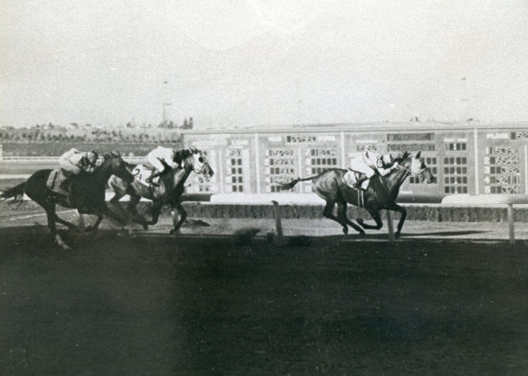 Thirteen jockeys have won the Hollywood Gold Cup at least twice. Laffit Pincay won the stake nine times, starting when he was 23 and for the ninth time when he was 55. Bill Shoemaker won it eight times, and three riders − Shoemaker, George Woolf and Jerry Lambert − won it three straight years. But for some jockeys − the best in the business, even Hall of Famers − the Gold Cup was elusive. No better example than Chris McCarron, who tried unsuccessfully 19 times. For nine minutes one year, McCarron thought he finally had the Gold Cup won, until the stewards disqualified his horse.