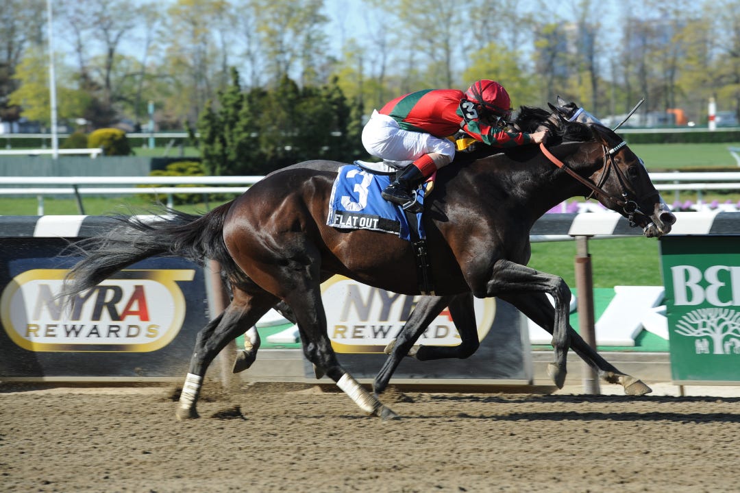 Before the Met Mile, Flat Out was 4 for 4 at Belmont with wins in the last two Jockey Club Gold Cups, the 2011 Suburban and this year’s Westchester.