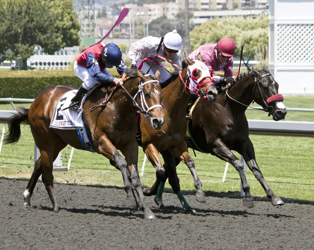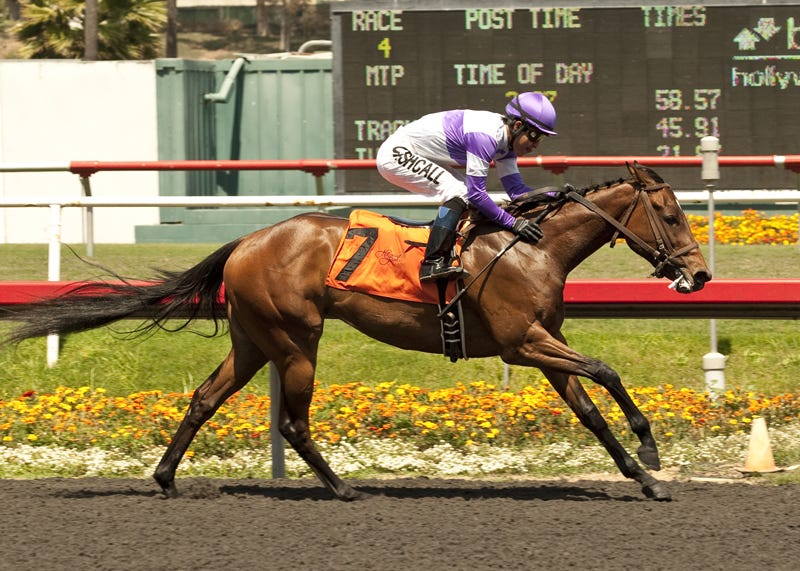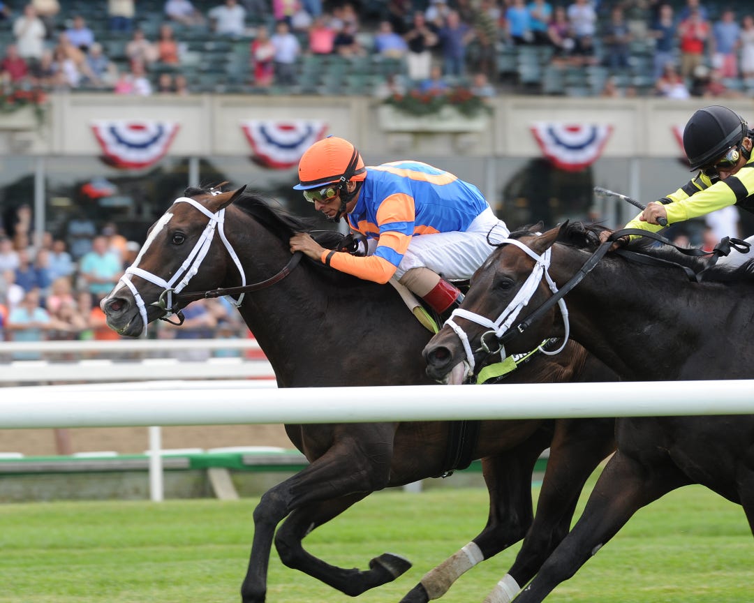 The early trailer in the 5 1/2 furlong dash, Ju Ju Eyeballs and jockey Paco Lopez roared into contention with a three-wide sweep on the turn.
