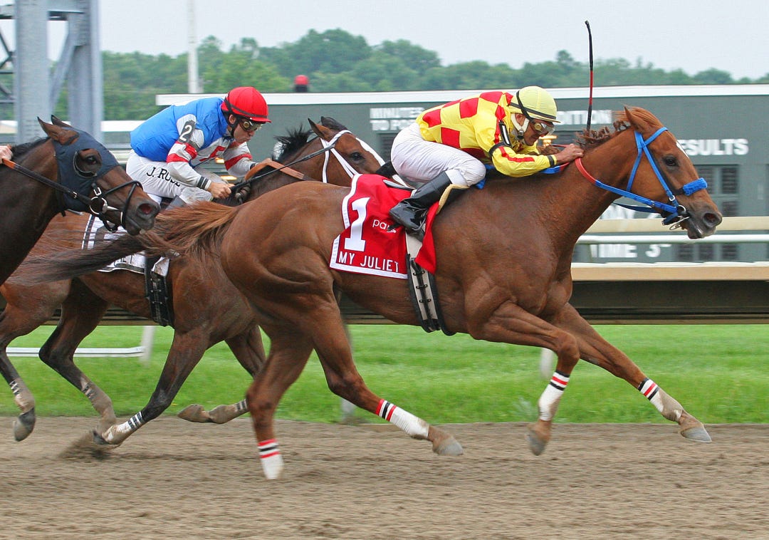 Something Extra started once during the winter – a closing second in the Gulfstream Park Turf Sprint. In his last race, he lost the Grade 3 Shakertown at Keeneland by a nose after encountering traffic in the stretch under Julien Leparoux.