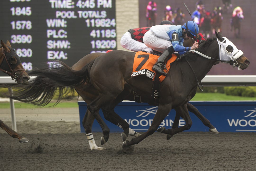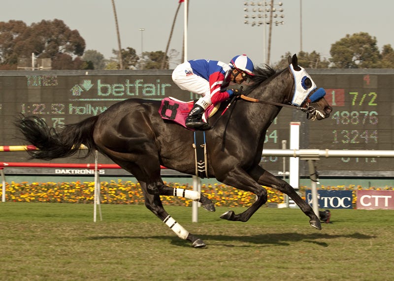 Shrug ($6.90) broke sharply with Frank Fuentes aboard and was allowed to set leisurely fractions of 22.84 and 46.21 seconds in the 6 ½-furlong feature. Devil in Disguise stalked the early pace, made a strong move on the stretch turn but couldn’t get past Shrug. Commander, who went off as the 6-5 favorite, was pinned down on the rail for most of the trip and finished third.