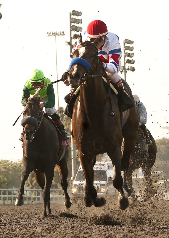 Rafael Bejarano wins his third stakes of the day aboard Surfcup in the $300,000 Snow Chief.