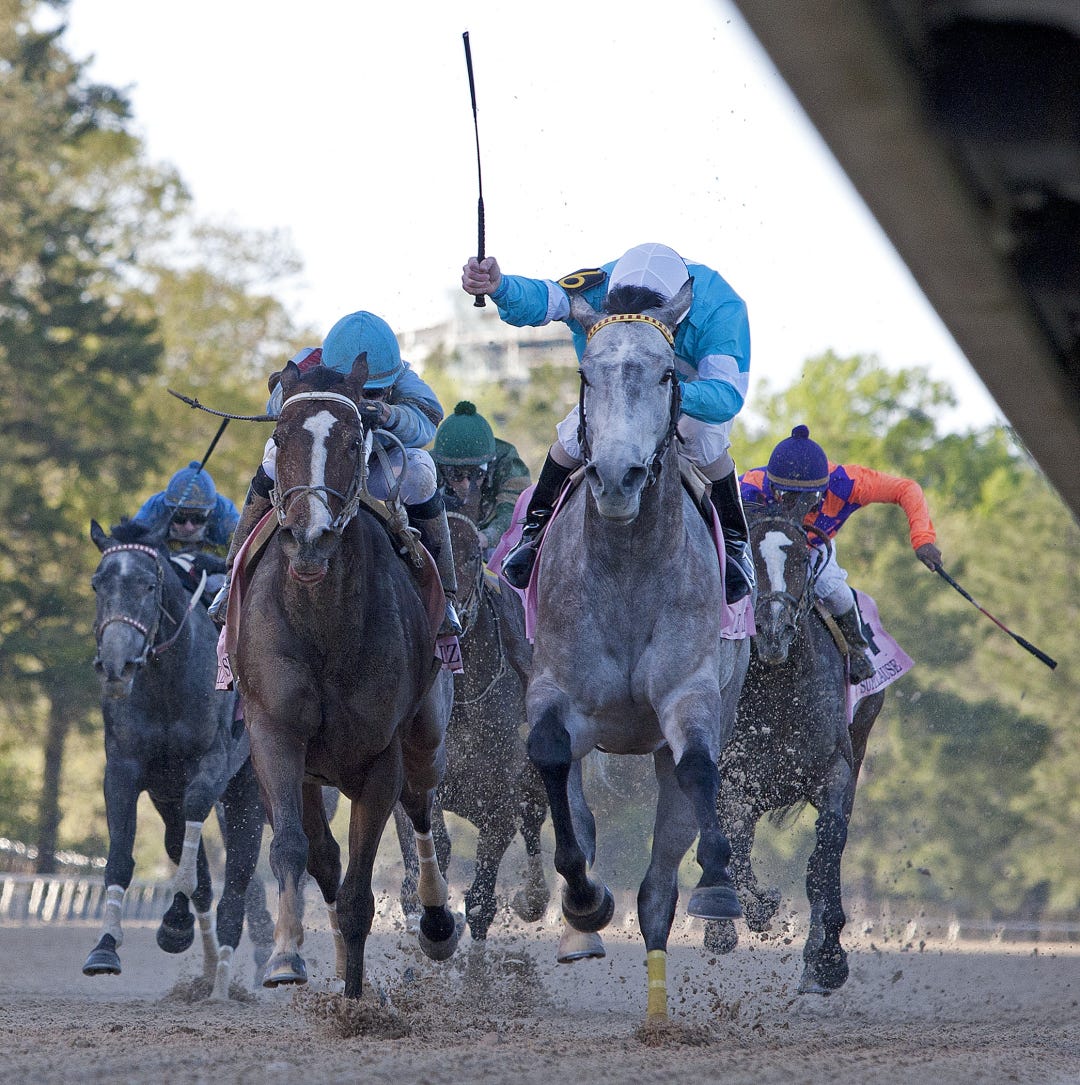 The 6-year-old Tujoes was making his first start since beating open company in a third-level optional $40,000 claimer on Jan. 7 and facing statebreds for the first time since winning the 1 1/16-mile Roanoke last September.