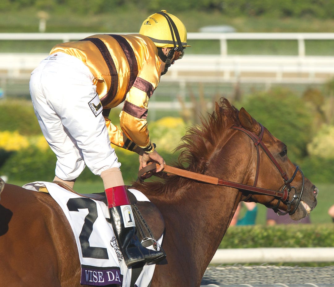Lezcano will be filling in again for John Velazquez, who suffered what has been reported as “minor fractures” in a spill Sunday at Aqueduct. Last fall, Lezcano gave Wise Dan a flawless ride here in winning the Grade 1 Shadwell Turf Mile, a race that Velazquez missed because of a scheduling conflict. It was the only time Lezcano has ridden Wise Dan in the gelding’s 20-race career.