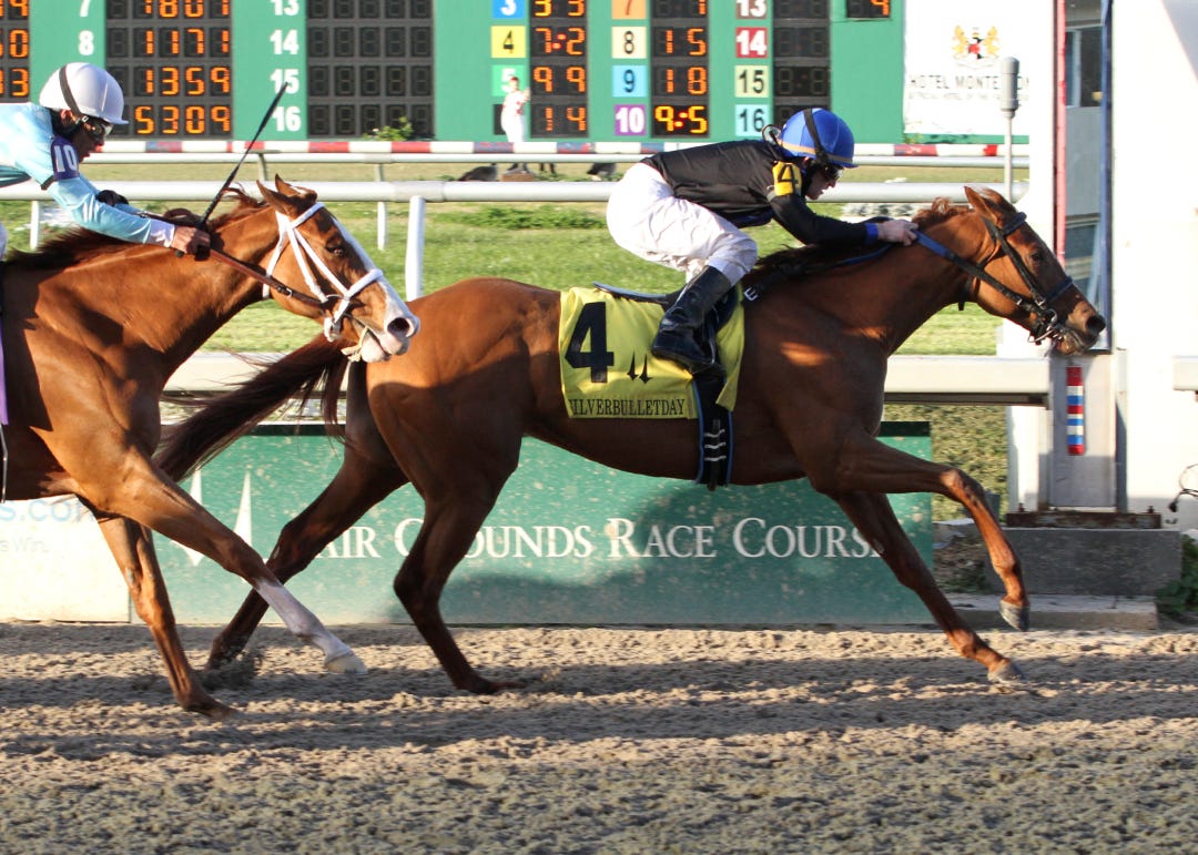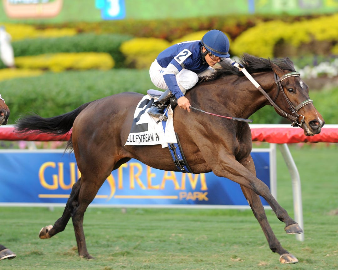 Ridden by Martin Garcia, Sky Kingdom ($9.40) closed from last in a field of seven with a five-wide move to win by a neck over Blueskiesnrainbows, winner of the Grade 2 Swaps Stakes at Betfair Hollywood Park last July.