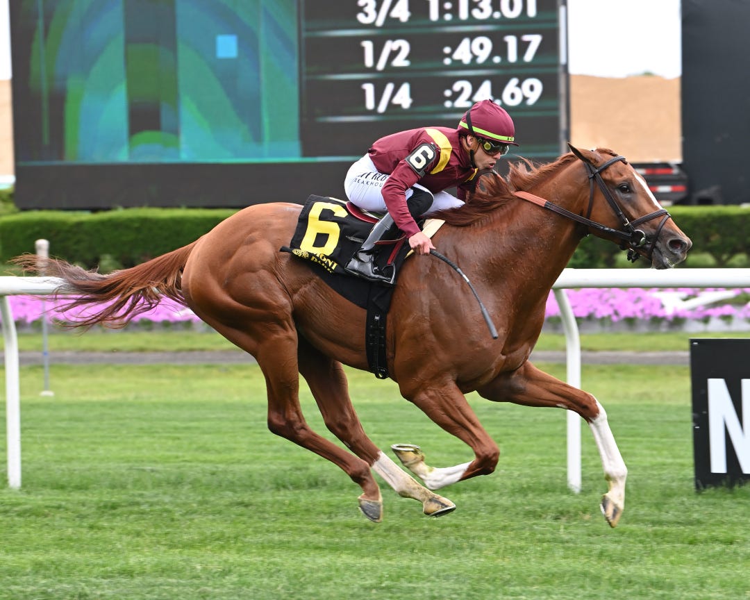 Skippylongstocking, who has been based in South Florida, traveled to Iowa earlier this month and finished a fast-closing second to Giant Game in the Grade 3, $300,000 Cornhusker Handicap at Prairie Meadows. Skippylongstocking earned a Beyer Speed Figure of 98.