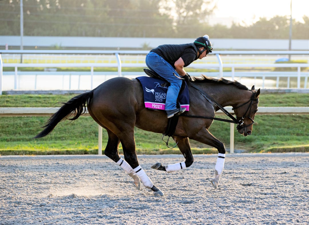 Runninsonofagun completed preparations for the Tom Fool by working five furlongs in 1:01.53 on Friday morning over the Belmont Park training track. It was his sixth work since resuming training in January.