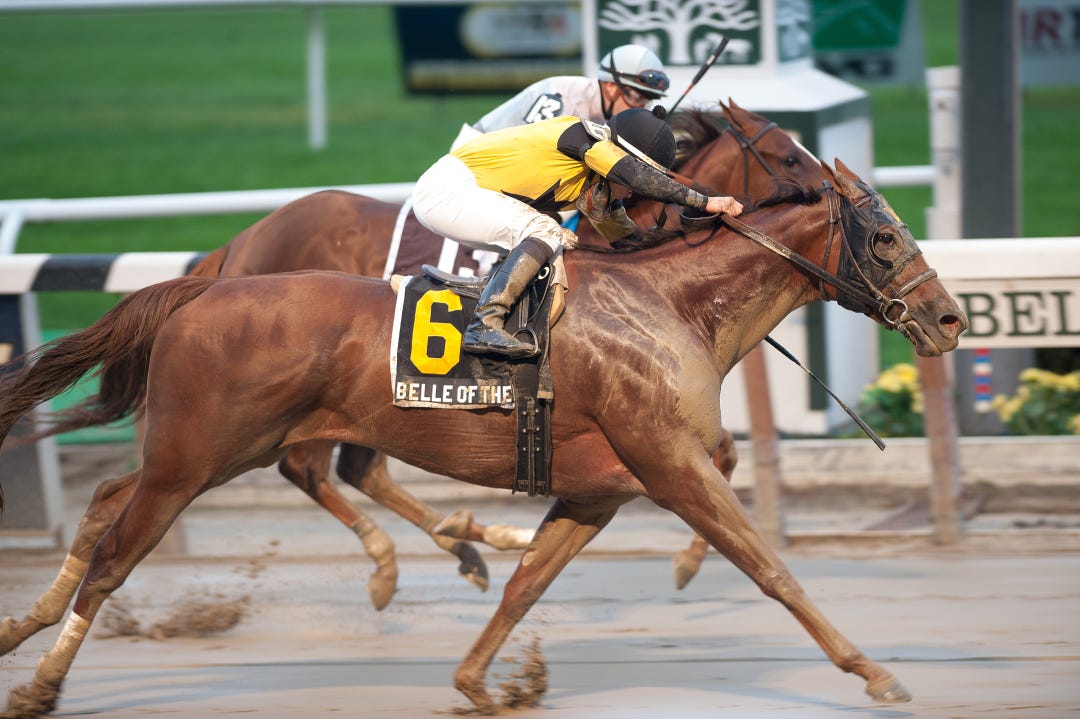 ELMONT, N.Y. - Belle of the Hall, inadvertently scratched in the morning but allowed to run for purse money only in the afternoon, rallied to nip Agave Kiss by a neck in Wednesday's $76,000 Valor Lady Stakes at Belmont Park.