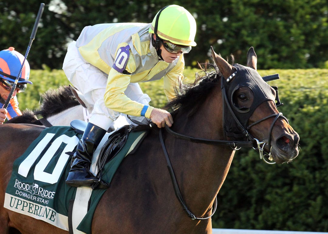 Comma to the Top completed one mile on the fast main track in 1:35.98 following splits of 23.48 seconds, 46.53, and 1:10.31.
