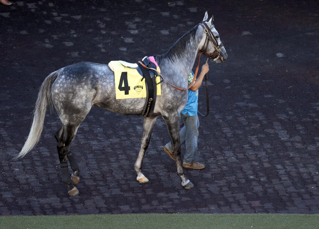 In her only start in a graded stakes, Grand Slam Smile was a well-beaten third in the Grade 3 Torrey Pines Stakes at a mile on dirt at Del Mar in August 2024, the only time the 5-year-old mare has finished worse than second in 18 starts.
