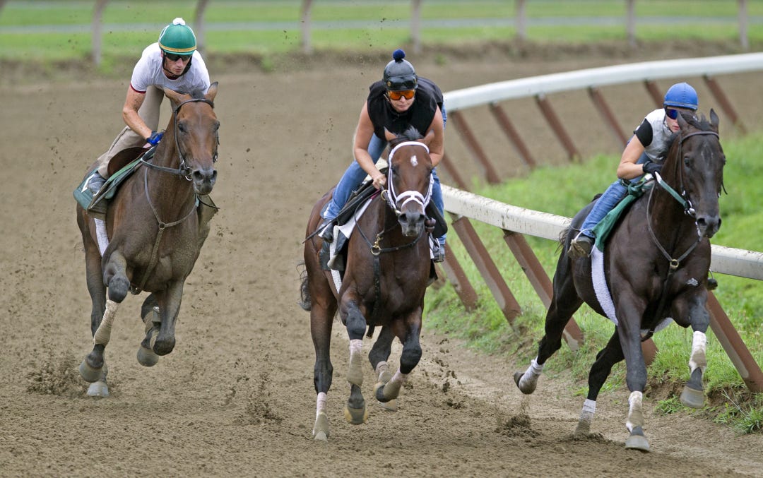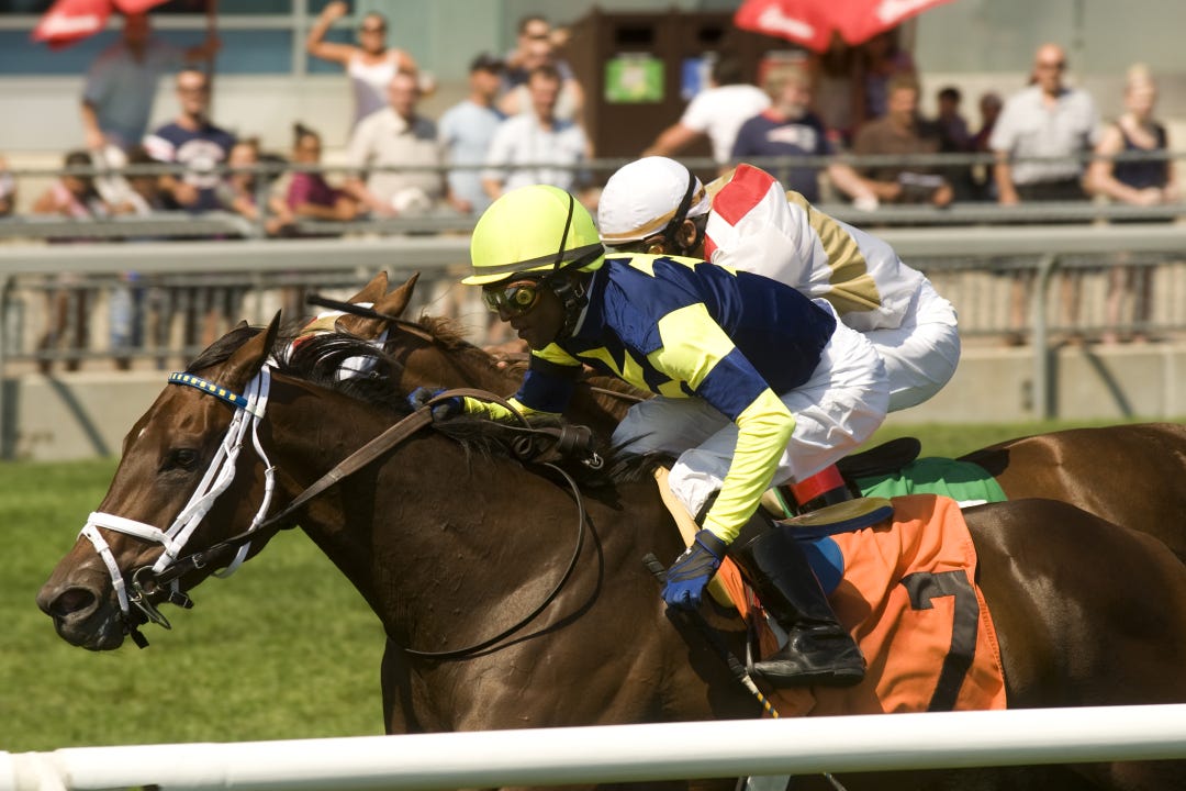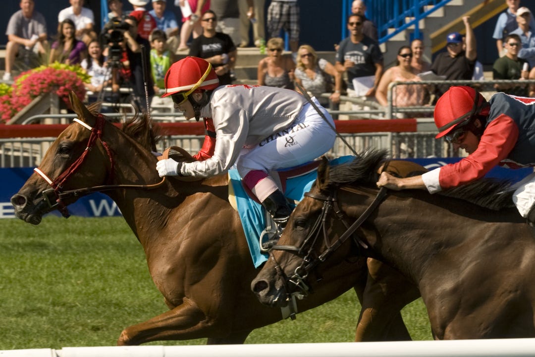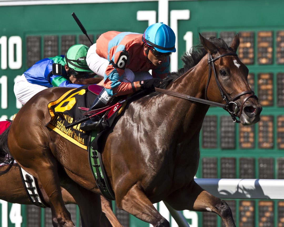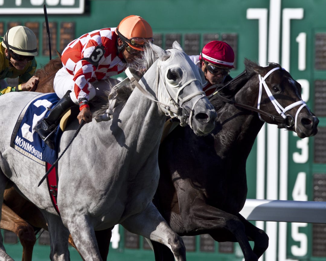 In his usual fashion, Get Serious went right to the front, only to find the gray Tune Me In his constant companion.