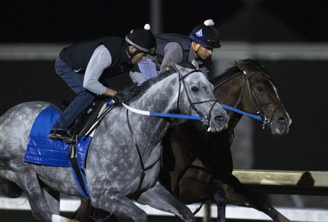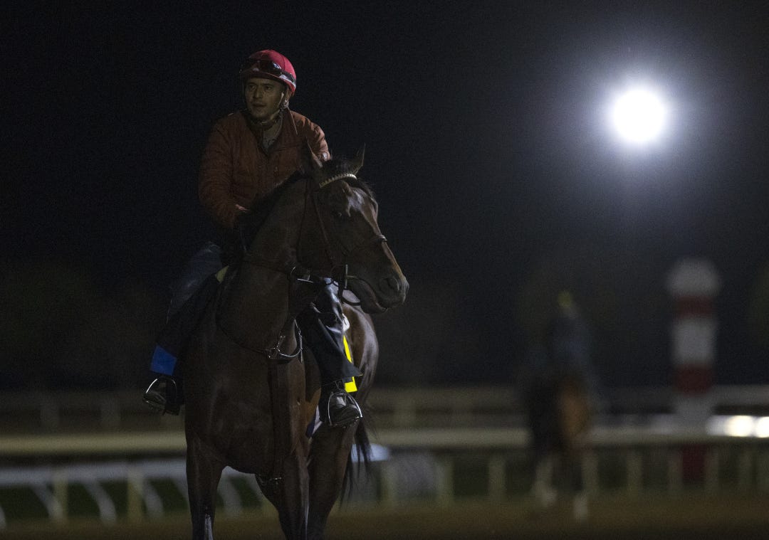 LEXINGTON, Ky. – It was a very cold and relatively uneventful morning on the Breeders’ Cup front Wednesday at Keeneland where the highlights came early and late, with FLIGHTLINE galloping at his usual time shortly after 5:30 a.m. and BLUE STRIPE working an eye-catching five furlongs for the Distaff nearly four hours later.